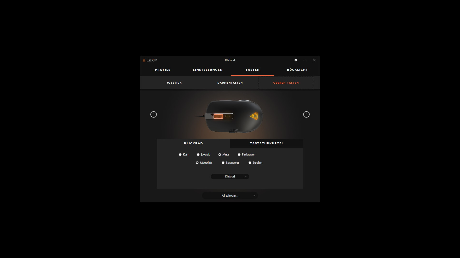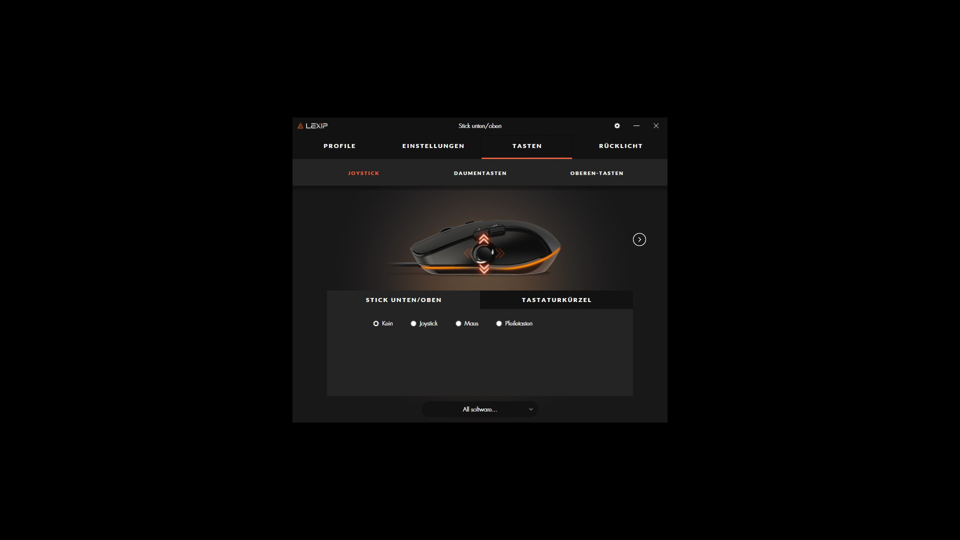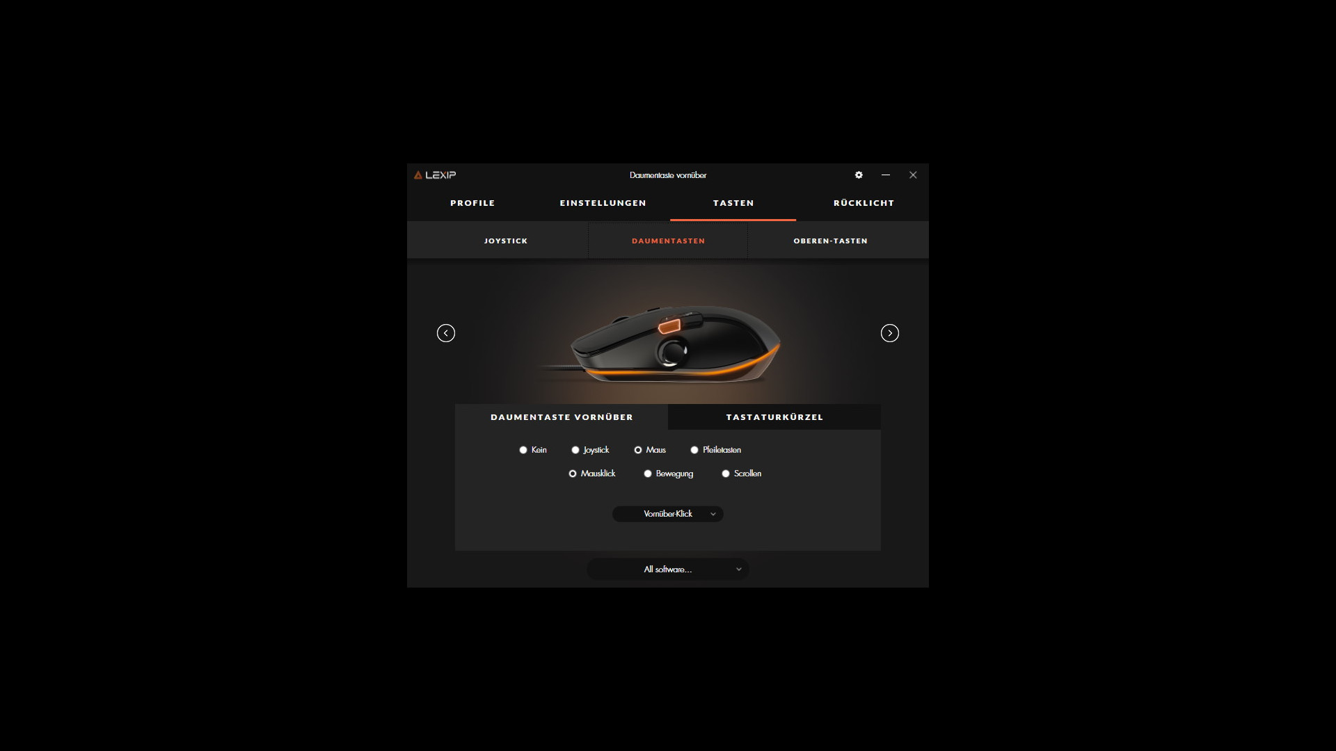 Die Software zur Lexip Np93 Gaming Maus ist einfach und intuitiv gestaltet. Zu Beginn lassen sich Profile einrichten. Es können aber auch bereits vorgefertigte Profile für gängige Programme und beliebte Spiele direkt von der Herstellerseite geladen werden. Im Grunde bietet die Software alle wichtigen Einstellungen. Jede Taste lässt sich nach Belieben mit einer Funktion oder mit Makros belegen, dasselbe gilt auch für den Mini-Joystick und der beweglichen Basis. Was wir allerdings nicht finden, ist die Einstellung zur Abtastrate und zur Lift-Off-Distanz. Dafür gibt es wiederum einige Einstellmöglichkeiten bezüglich der Beleuchtung.