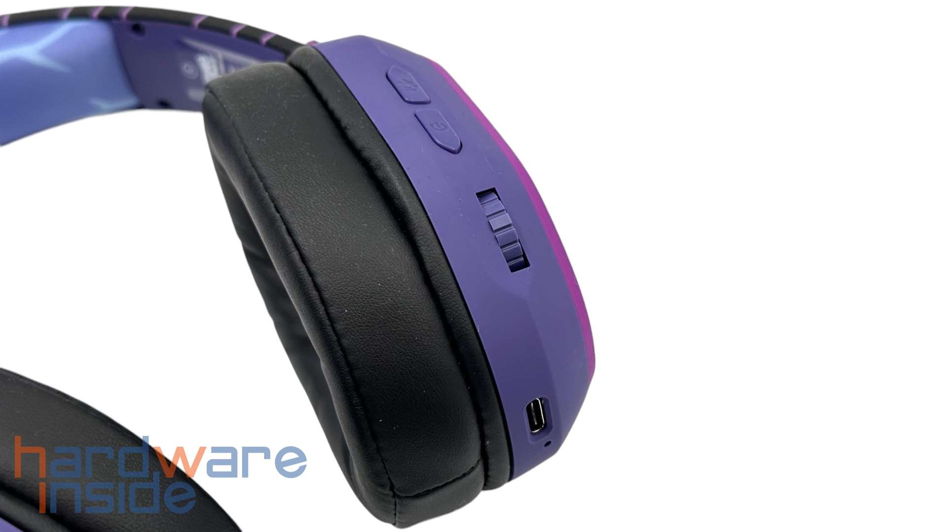 Alle Anschlüsse und Bedienelemente befinden sich auf der rechten Ohrmuschel. Hier finden wir einen USB-Typ-C-Anschluss, welcher nicht nur dem Laden des Akkus dient. Eines der mitgelieferten Kabel adaptiert den USB-Anschluss des Headsets so, dass es an einen kombinierten 3,5 mm Audioanschluss eingesteckt werden kann. Weiter finden wir hier noch ein kleines Rad, über das wir die Lautstärke ändern können. Die Einstellung funktioniert dabei stufenlos ohne jegliche Rasterung. Darüber folgt eine Taste die mehrere Funktionen erfüllt. Sie dient dem Ein- bzw. – Ausschalten und wird auch verwendet, um die Bluetooth-Verbindung herzustellen. Darüber gibt es noch eine zweite Taste, mit der sich das Mikrofon stummschalten lässt.