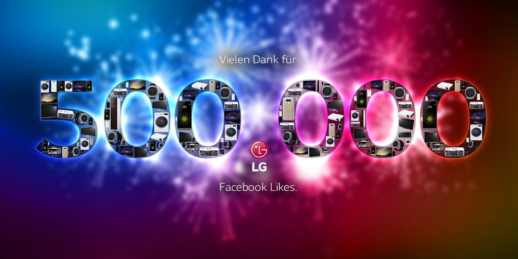 Eschborn, 14. Februar 2017 — LG Electronics Deutschland (LG) freut sich über 500.000 Facebook-Fans. Das Unternehmen nimmt das Erreichen dieses Meilensteins zum Anlass, seinen Fans die Chance auf den Gewinn einer Anzahl attraktiver Preise zu geben. Der Start des Gewinnspiels am Valentinstag verleiht der Kampagne besondere Symbolkraft.