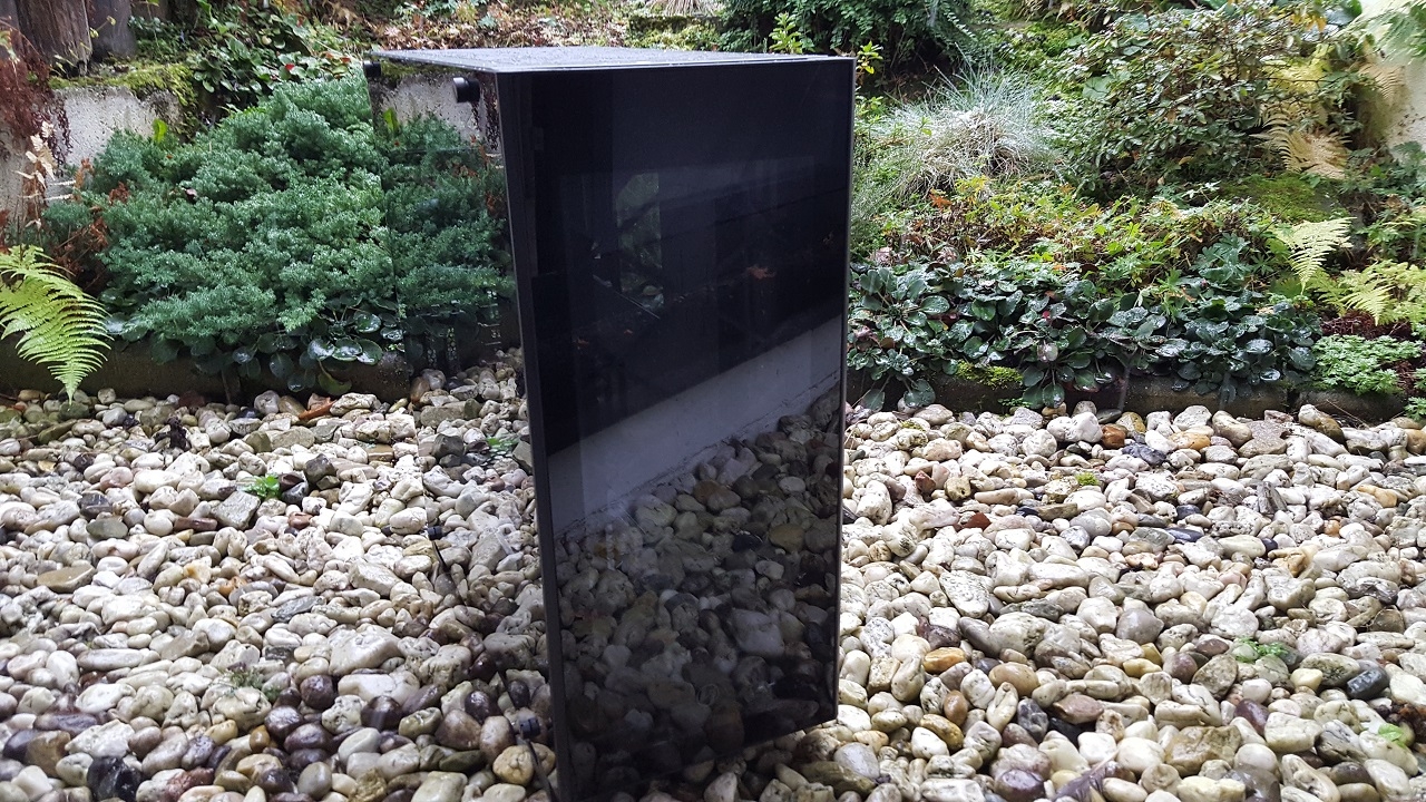 Die zwei Seitenteile aus Echtglas können, nach dem lösen von vier Rändelschrauben, entfernt werden. Die vordere Blende des Gehäuses kann mit ein wenig Kraft abgezogen werden, da diese durch Verankerungen am Gehäuse befestigt ist. In der jetzt abgezogenen Blende kommt Echtglas zum Einsatz.