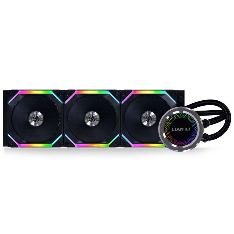 Die auf statischen Druck ausgelegten Lüfter besitzen Pin-Kontakte und werden mit einem cleveren Stecksystem verbunden. So müssen mehrere Lüfter nicht mehr einzeln angeschlossen werden. Für beste Kühlleistung sorgen zusätzlich der 27 mm dicke Aluminiumradiator mit seinen dichten Kühlfinnen und das Dreikammer-Design der Pumpe. Typisch für Lian Li überzeugen die Kühler mit hochwertigen Materialien und bester Verarbeitung.