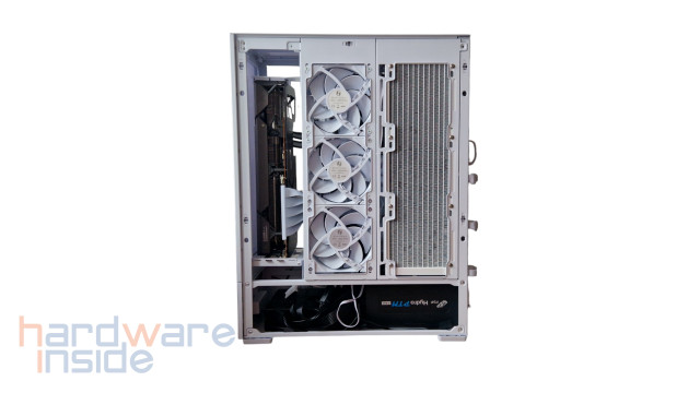 Selbst im ausgeschalteten Zustand macht die Hydroshift, auch wenn man nur das Pumpengehäuse sieht und sich die drei UNI FAN TL RGB Lüfter rückseitig verbergen, eine gute Figur. Mit A/RGB kommt das Ganze dann natürlich besser zur Geltung.