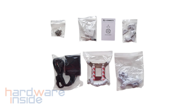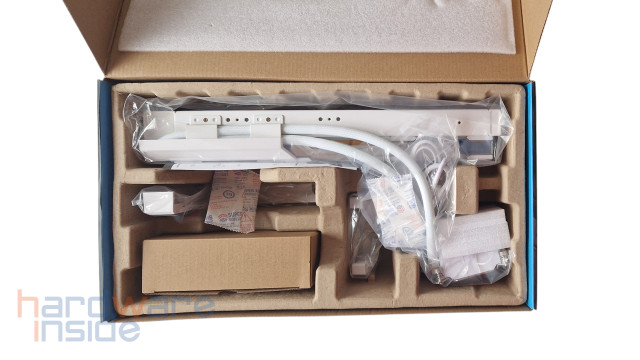 Neben der HydroShift LCD 360TL, die sicher in zwei Plastikbeuteln verpackt ist, befindet sich in einer kleinen Kartonage auch noch folgendes Zubehör im Lieferumfang: