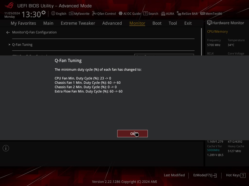 Bevor wir uns an die Herstellersoftware wagen, wird vorab per BIOS (in unserem Fall-ASUS) ein Fan-Tuning gemacht, somit wird die Geschwindigkeit aller verbauten Lüfter ermittelt.