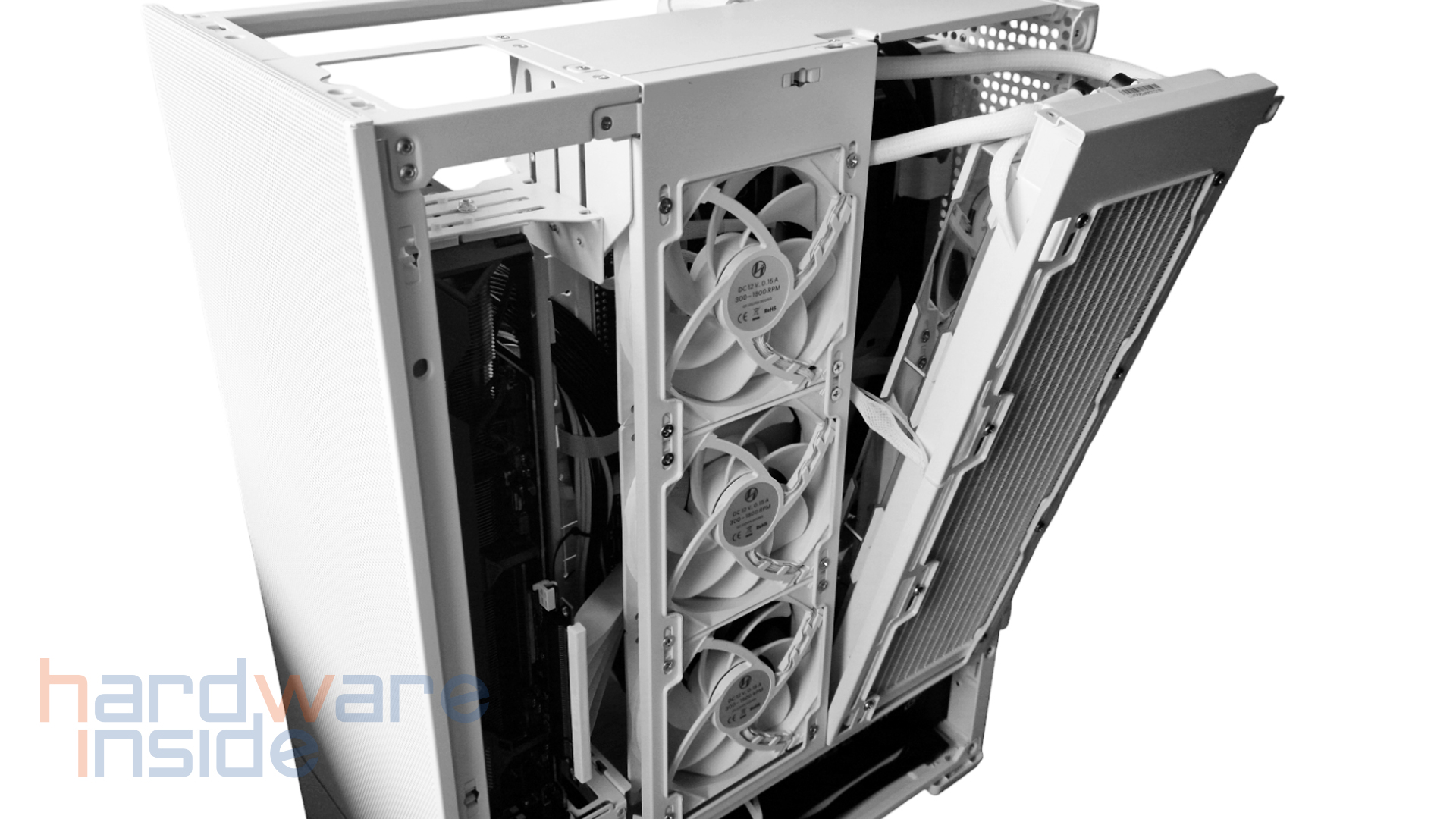 Die „L-förmige Abdeckung“ dient der ästhetischen Verkleidung des Radiators an der Oberseite, um die Pumpenhalterung zu kaschieren. Dies ist insbesondere relevant, wenn die Schläuche nicht wie abgebildet links am Radiator verlegt werden, sondern alternativ auch rechts positioniert werden können, dafür liegt dem Lieferumfang ein Gegenstück bei.
