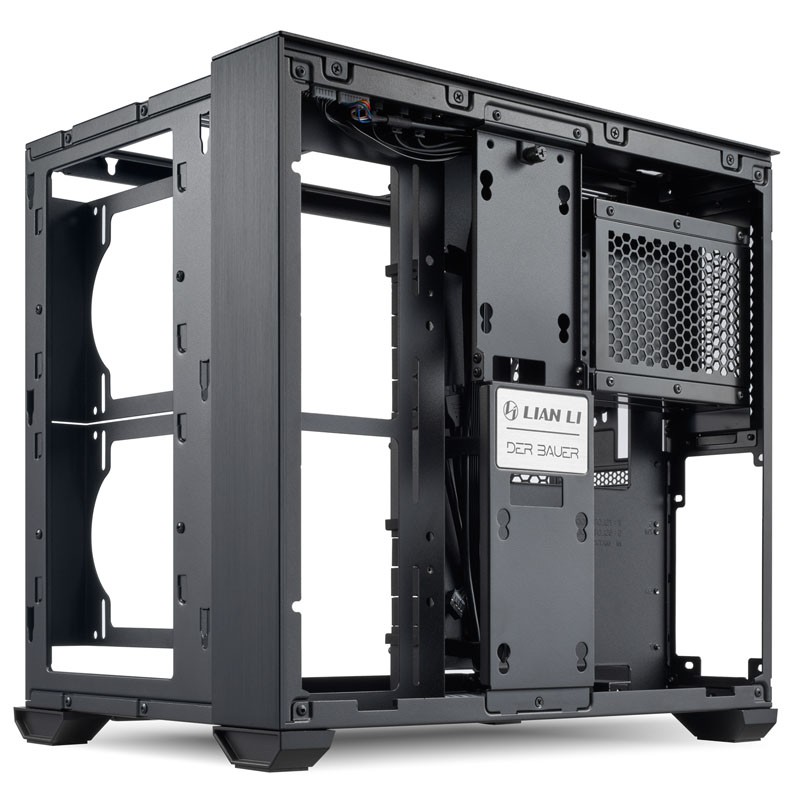 Als kleiner Tower mit großem Luftstrom bietet das O11 Air Mini ein modulares Design für ATX-, Micro-ATX- oder Mini-ITX-Mainboards. Das Gehäuse lässt sich an verschiedene Konfigurationen anpassen, indem die modulare Rückwand in unterschiedliche Positionen bewegt wird. Da sich beim O11 Air Mini alles um das Thema Airflow dreht, nimmt der Innenraum unterschiedlichste Konfigurationen von Lüftern und Radiatoren auf. So lässt sich die Kühlung optimal auf die verbaute Hardware anpassen. Das Netzteil, die Laufwerke und die Kabel sind in einer zweiten Kammer untergebracht, sodass der Innenraum stets aufgeräumt wirkt. Durch die Kombination von Aluminium und gehärtetem Glas sieht das Lian Li O11 Air Mini besonders elegant aus.