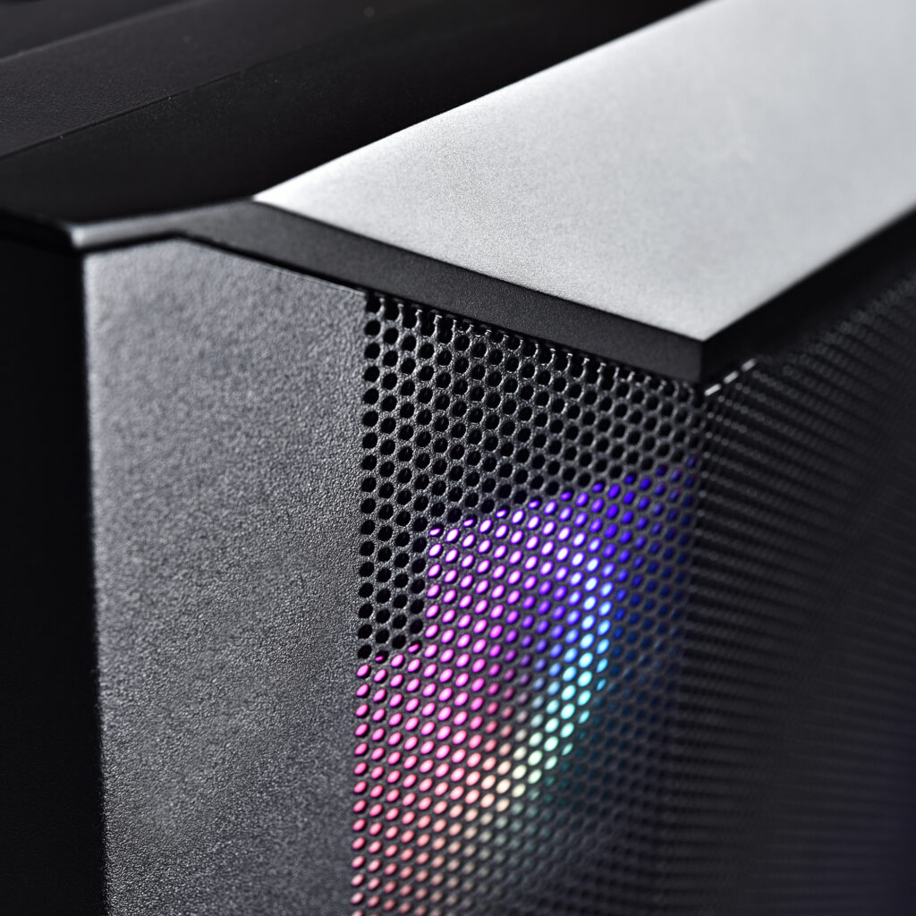 LIAN LI hat bei der Front sowie dem linken Mesh-Element des LANCOOL II MESH eine Maschendichte gewählt, die den geringsten Widerstand für einen maximalen Luftdurchsatz bietet, aber gleichzeitig das Eindringen von Staub verhindert. Darüber hinaus sorgen die wabenförmigen Lochungen an der Ober- und Rückseite des Gehäuses für eine bessere Durchlüftung.
