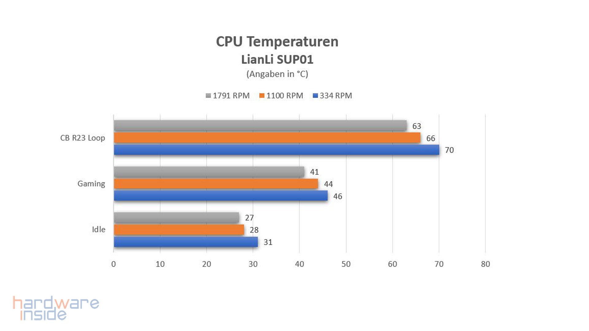 Abgesehen davon sind die von uns erreichten Werte Istwerte und können je nach verbauter Hardware natürlich abweichen. Die von uns ausgelesenen Werte sind Durchschnittstemperaturen. Die Wahrnehmung der Lautstärke ist immer subjektiv zu betrachten und vom eigenen Gehör abhängig.
