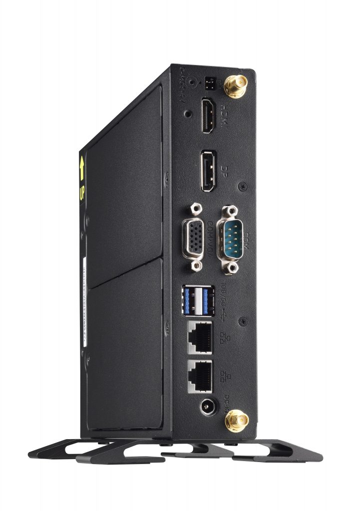 Gut erreichbar auf Front- und Rückseite verteilt sind auch Cardreader, 8× USB, HDMI 2.0, DisplayPort 1.4, VGA, Audio-Anschlüsse, COM, zwei Netzwerkanschlüsse, Antennenbuchsen und Remote-Power-On.