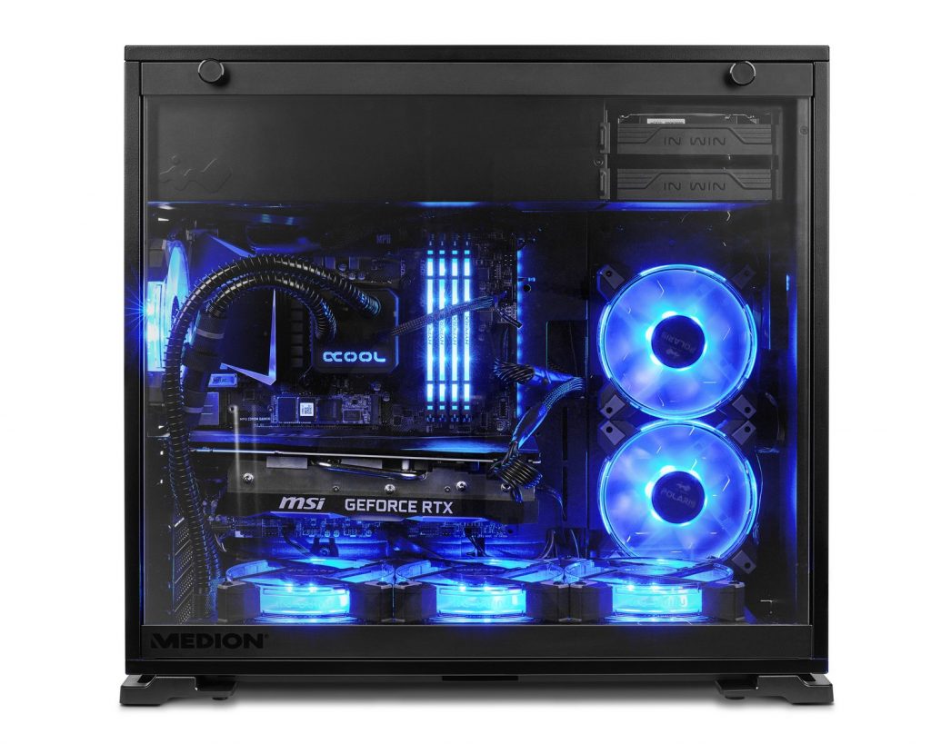 Alle Komponenten sind auf einem hochwertigen MSI® MPG Z390M GAMING EDGE AC Mainboard verbaut und werden von einer Alphacool Eisbaer 360 Wasserkühlung mit drei InWin Polaris RGB 120mm Lüftern gekühlt, während ein hochwertiges Seasonic® Focus Plus Gold (SSR-750FX) Netzteil eine effiziente Stromversorgung garantiert. Der MEDION ERAZER X87095 verfügt außerdem über ein modernes Design-Gehäuse mit Glas-Panels von InWin, das einen ungehinderten Einblick in das Innenleben ermöglicht.