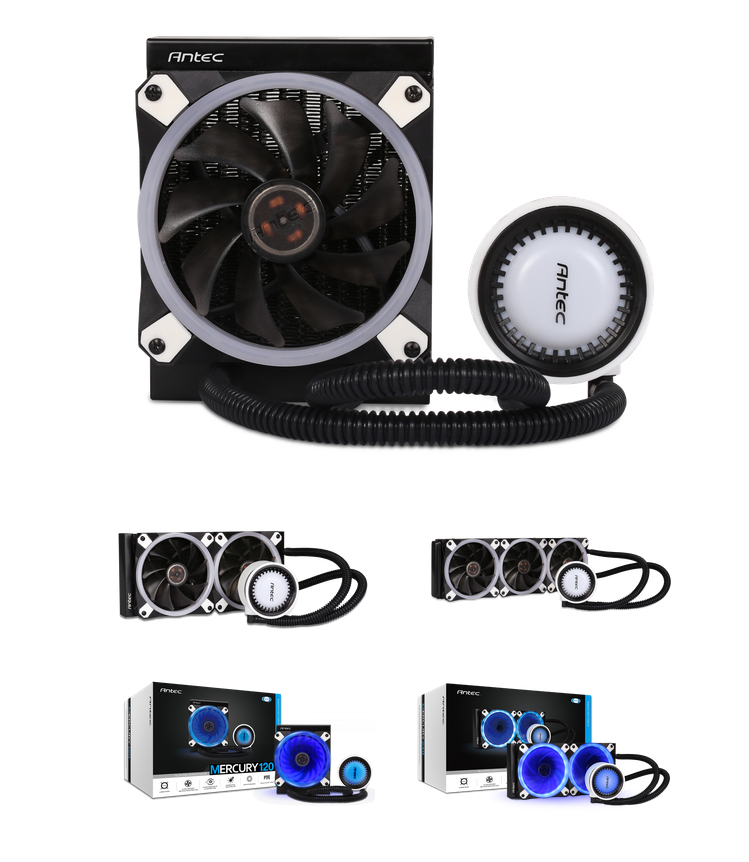 Im Jahr ihres 31-jährigen Bestehens präsentiert Antec Inc., führender Anbieter von leistungsstarken Computerkomponenten und -zubehör für den Gaming, PC-Upgrade und Do-It-Yourself-Markt, eine neue Serie von All-in-One Liquid CPU Cooling: die Mercury-Serie. Die Mercury Kühler sind ab sofort im Handel und in drei Radiatorgrößen erhältlich. Sie liegen preislich bei 69 Euro für den Mercury 120, 99 Euro für den Mercury 240 und 125 Euro für den Mercury 360.