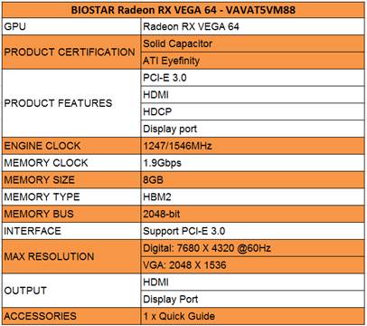 BIOSTAR Radeon RX VEGA 64: $689 (UVP)