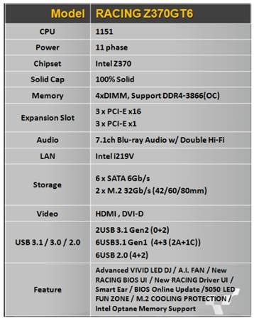 Weitere Informationen zum BIOSTAR RACING Z370GT6 sind hier zu finden:
