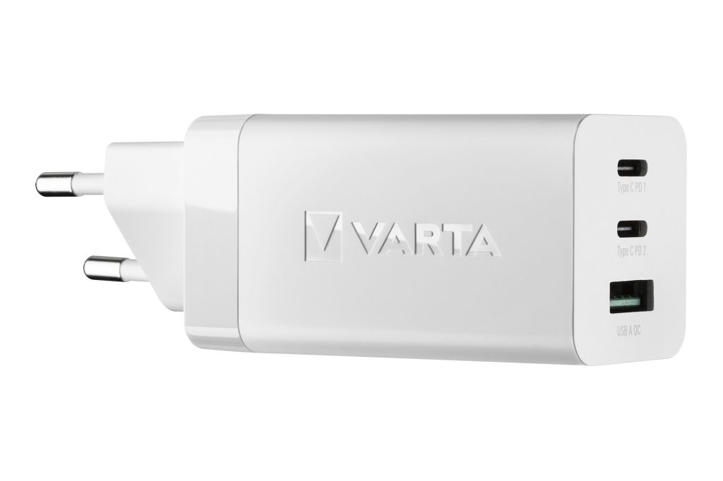 Mit dem neuen High Speed Charger bietet VARTA einen Adapter, der gleich mehrere Probleme bekannter Alltagssituationen löst. Wer im Home Office oder ganz besonders unterwegs diverse Geräte wie Laptop, Smartphone, Tablet oder andere Gadgets nutzt, weiß, wie schwierig sich die Suche nach Steckdosen gestaltet. Mit dem High Speed Charger reicht eine Steckdose aus, um bis zu drei Geräte sicher und schnell gleichzeitig zu laden. Das sperrige und oftmals schwere Laptop-Kabel darf ruhigen Gewissens ebenso zuhause vergessen werden, wie diverse Netzstecker für Smartphone und Tablet. Mit seinem schlichten, modernen Design macht der High Speed Charger überall eine gute Figur: in Weiß gehalten mit einem dezent in den kompakten Korpus eingestanztem VARTA-Logo in Hochglanz-Optik. Trotz der kompakten Größe hat der High Speed Charger extrem viel Power. Einzeln angesteuert, gibt jeder USB Type C PD Anschluss 65 Watt aus. Werden beide USB Type C Anschlüsse gleichzeitig genutzt, werden die 65 Watt im Verhältnis 45 Watt und 20 Watt aufgeteilt, ideal für Laptops oder andere Geräte mit einer hohen Ladeanforderung. Der USB A QC Anschluss bietet sich hingegen für Smartphones und Tablets an.