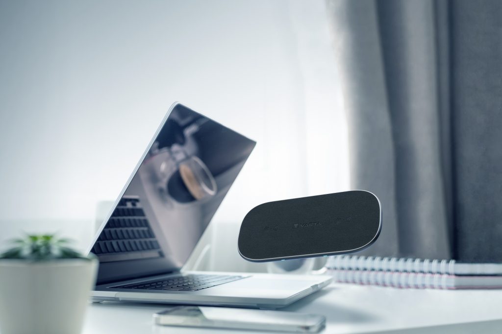 In den eigenen vier Wänden verschieben sich die Anforderungen an eine moderne Ladelösung. Mindestens so wichtig wie die Performance ist hier das Design des Ladegeräts. „Das Auge lädt mit“ ist die Devise. Die neuen Wireless Charger Pro und Multi von VARTA passen dank ihres schlichten Designs in jeden Raum – ob ins Schlafzimmer, ins Wohnzimmer oder auf dem Schreibtisch im heimischen Büro. Schwarzer Stoff auf der Oberseite, ein dezent auf der Ladefläche eingraviertes VARTA Logo, ein hochwertiges Aluminium-Gehäuse sowie eine unauffällige Status-LED an der Kante als Indikator für den Ladevorgang sprechen eine gewollt unauffällige Sprache. Dank praktischer Silikon-Füßchen lassen sich die Charger auch auf glatten Oberflächen sicher platzieren. Während mit auf dem Wireless Charger Pro ein Gerät geladen wird, versorgt der Wireless Charger Multi gleich zwei Geräte wie Smartphone und Wireless Kopfhörer mit neuer Energie. Trotz aller Zurückhaltung im Design schaffen es die Wireless Charger Modelle, die ihre Kraft jeweils aus dem mitgelieferten USB C Kabel beziehen, die nötige Power an den Geräte-Akku zu liefern: 15 Watt beim Wireless Charger Pro und bis zu 20 Watt pro Ladeseite beim Wireless Charger Multi. Praktisch ist dabei, dass sich die Geräte auch während des Ladevorgangs ganz normal nutzen lassen. Dem Surfen, Musikhören oder Videoschauen auf dem Smartphone steht also weiterhin nichts im Weg.
