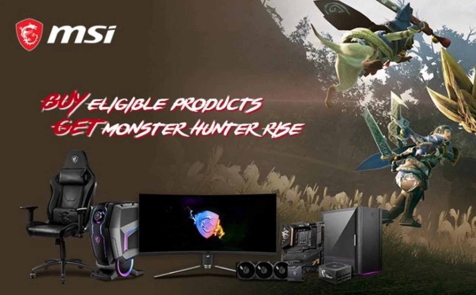 Beim Kauf von ausgewählten MSI-Produkten liegt ein Code für die PC-Version von Monster Hunter Rise bei. Der Monsterjagd mit der von MSI ausgewählten Ausrüstung bietet den angehenden Jägern das bestmögliche Spielerlebnis. Die Geräte des Hardware-Herstellers stellen die Highlights der PC-Version wie beispielsweise die native 4K-Auflösung oder auch die hochdetailierten Texturen in herausragender Qualität dar.