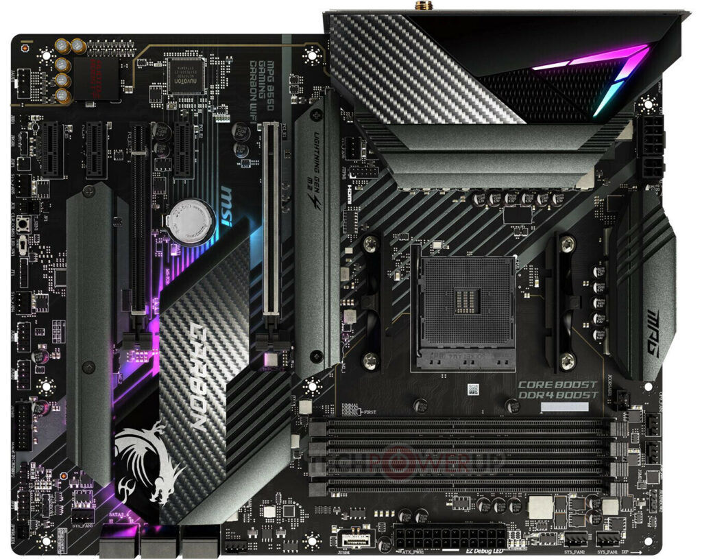 MSI registrierte fünf neue Motherboards bei der Eurasischen Wirtschaftskommission, die auf dem AMD B550-Chipsatz basieren. Die fünf neuen Sockel-AM4-Motherboards decken einen weiten Bereich von (erwarteten) Preisempfehlungen von unter 200 US-Dollar ab. Die Reihe wird angeführt vom MSI Performance Gaming (MPG) B550 Gaming Carbon WiFi, das Teil der AMD Chipsatz-Enthüllungspräsentation war; dicht gefolgt vom MPG B550 Gaming Edge WiFi, seinem Mini-ITX-Geschwister, dem MPG B550I Gaming Edge WiFi, dem MSI Arsenal Gaming (MAG) B550M Mortar WiFi und dem B550M PRO-VDH in der Einstiegsklasse. In der Aufstellung fehlt ein „MAG B550 Tomahawk“, möglicherweise weil MSI es später auf den Markt bringen will. Das Unternehmen brachte seinen MAG X570 Tomahawk erst kürzlich auf den Markt und hat wahrscheinlich noch Bestände seines beliebten B450 Tomahawk MAX-Motherboards, das mit großen 32 MB BIOS-ROM-Chips auf den Markt gebracht wurde. AMD und seine Motherboard-Partner werden das Motherboard mit dem B550-Chipsatz voraussichtlich Mitte Juni 2020 auf den Markt bringen.
