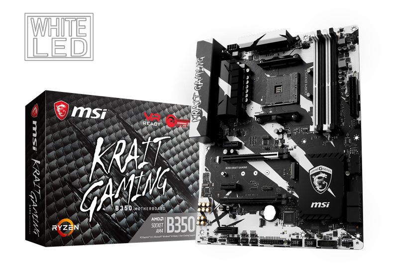 Mit dem B350 KRAIT GAMING präsentiert MSI das Pendant zum bereits vorgestellten X370 KRAIT GAMING. Das B350 KRAIT GAMING orientiert sich am typischen schwarz-weißen Design der KRAIT-Serie, bietet 2-fach Crossfire-Support sowie eine umfassende Auswahl an Gaming-Features. Zur Ausstattung zählen unter anderem DDR4 Boost, Audio Boost mit Nahimic-2, Turbo M.2 und USB-3.1(Gen2).