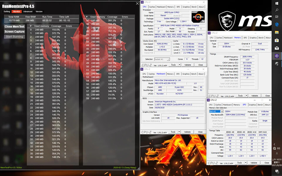 AMD Ryzen Prozessoren der PRO 4000 Serie bieten eine höhere CPU- und Speicherleistung für Übertakter und Enthusiasten, um den Benchmark auf ein neues Niveau zu heben. MSI hat nicht nur die beste Leistung bei der Speicherfrequenz gezeigt, sondern auch die Speicherstabilität mit Memtest bestanden.