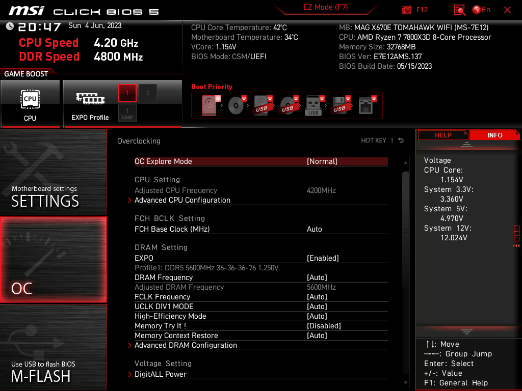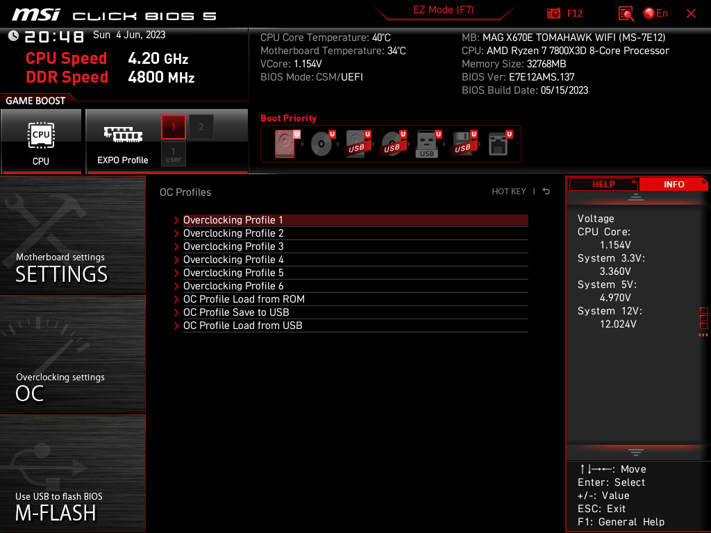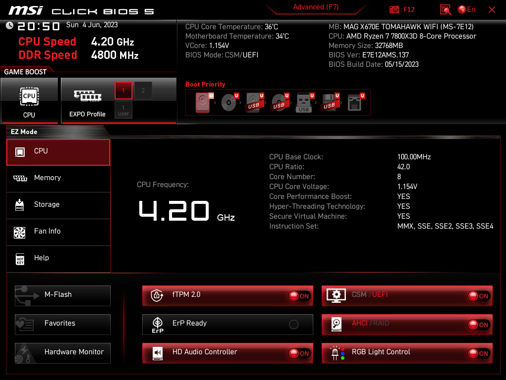 | Mainboard | MSI MAG X670E TOMAHAWK WIFI |