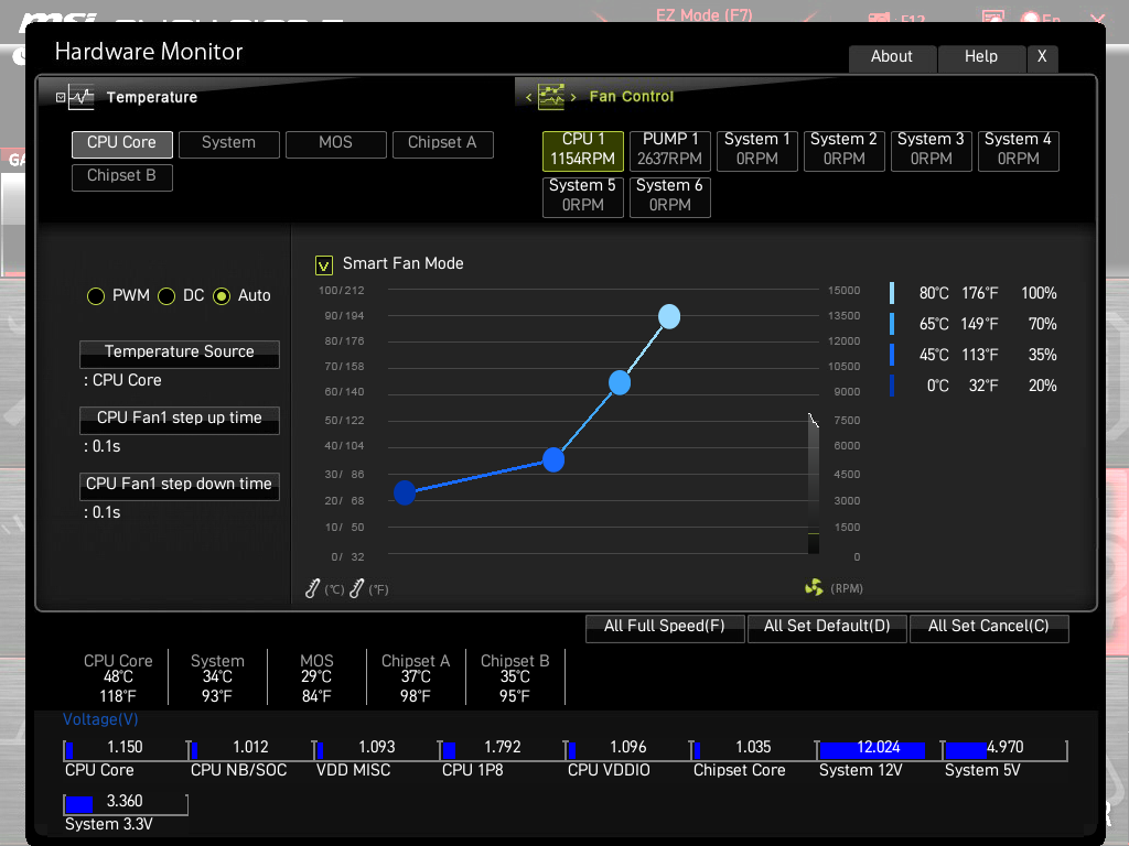 Sobald Windows die neue CPU erkennt und versucht, die Treiber herunterzuladen, startet automatisch ein Treiber-Hilfsprogramm von MSI. Dieses Tool installiert während des Windows-Updates die benötigten Mainboard-Treiber. Ist alles installiert, bleibt noch das MSI-Center. Diese Software hat in der Grundfunktion nur die Hardwareüberwachung. Möchte man wissen, was sein neues MSI-Board alles kann, findet man unter den Funktionstest (oben rechts vier Quadrate) allerlei Spielereien. Interessante Funktionen wären z. B. Mystic Light zur Ansteuerung der RGB-Komponenten oder Benutzerszenarien zur Feinabstimmung von Lüftern und Pumpen.