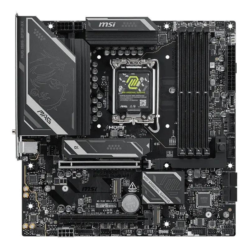 MSI hat das MAG Z890M GAMING PLUS WIFI vorgestellt, ein Micro-ATX-Mainboard für Intels aktuelle Desktop-Prozessoren. Das Board kombiniert hohe Konnektivität, umfangreiche Erweiterungsmöglichkeiten und benutzerfreundliche Features auf der Z890 platform. Die 6-lagige PCB und die 12+1+1+1-Phasen-VRM sorgen für stabile Leistung selbst bei modernen CPUs mit vielen Kernen. DDR5-RAM wird unterstützt, inklusive Overclocking jenseits von 8800 MT/s – ideal für Enthusiasten.