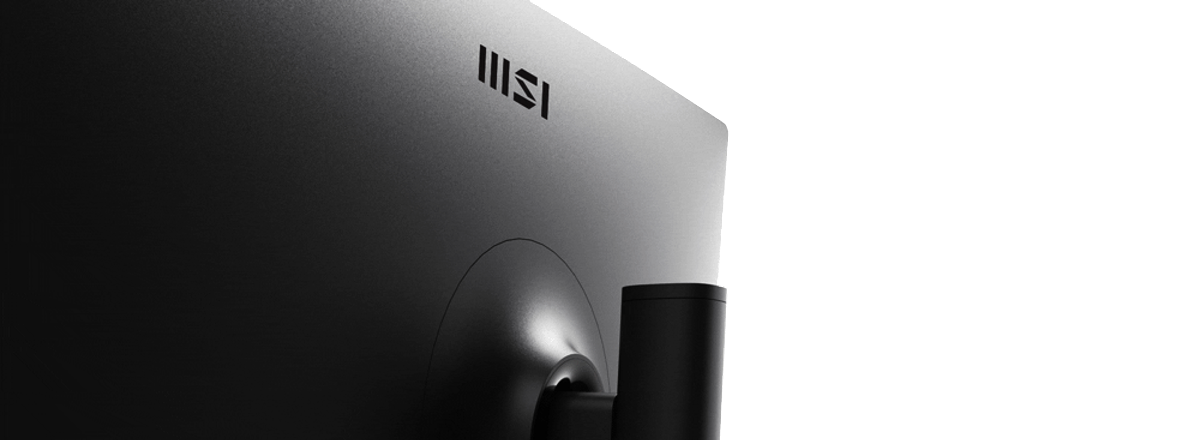 Von hinten macht der MSI Modern MD241PDE ebenfalls eine gute Figur und die schlanke Halterung verleiht dem Ganzen eine gewisse Leichtigkeit. Gut gefällt uns, dass der Monitor sehr nahe an Wände gestellt werden kann und dadurch mehr Platz auf dem Schreibtisch hinterlässt. Leider verfügt die Halterung des Monitors über keinerlei Kabeldurchführungen.