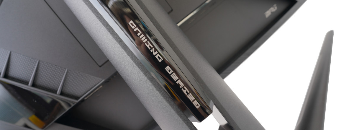 Der MSI MPG ARTYMIS 323CQR kommt mit einem sehr stabilen Monitorfuß. Der eigentliche Fuß ist lackiert und aus Aluminium gefertigt. Der Hals besteht überwiegend aus Kunststoff und passt optisch perfekt zur Monitorform. Die Aufschrift „GAMING SERIES“ lässt klar verlauten, für was der Monitor hauptsächlich gedacht ist. Der Kopf ist eine Metallplatte, welche einfach an die VESA Löcher des Monitors angeschraubt wird. Eine hervorragende Konstruktion.
