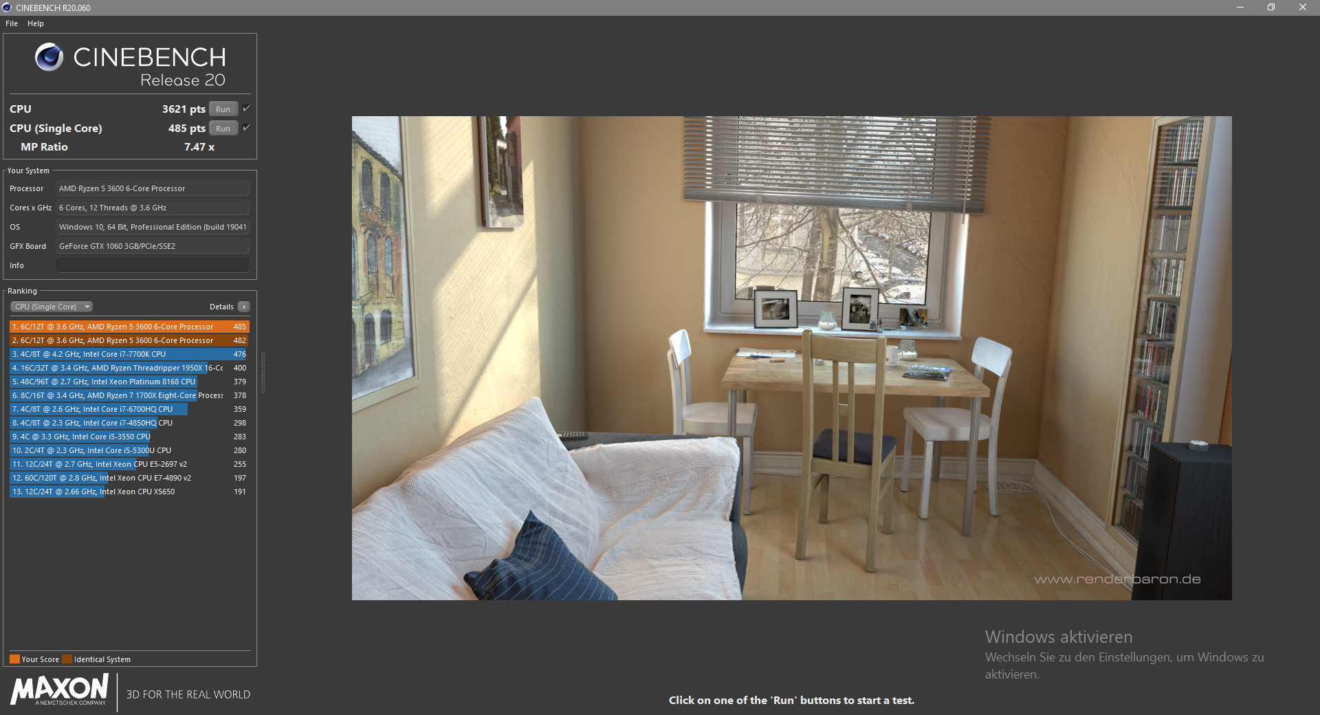 Im Cinebench R20 erreichen wir im Multi-Core-Durchlauf 3.621 Punkte und im Single-Core-Durchlauf 485 Punkte. Dabei wird der Prozessor mit dem Arctic Freezer A13X bis zu 71 Grad warm, wenn wir die Lüftersteuerung in der Software auf „Balanced“ belassen.