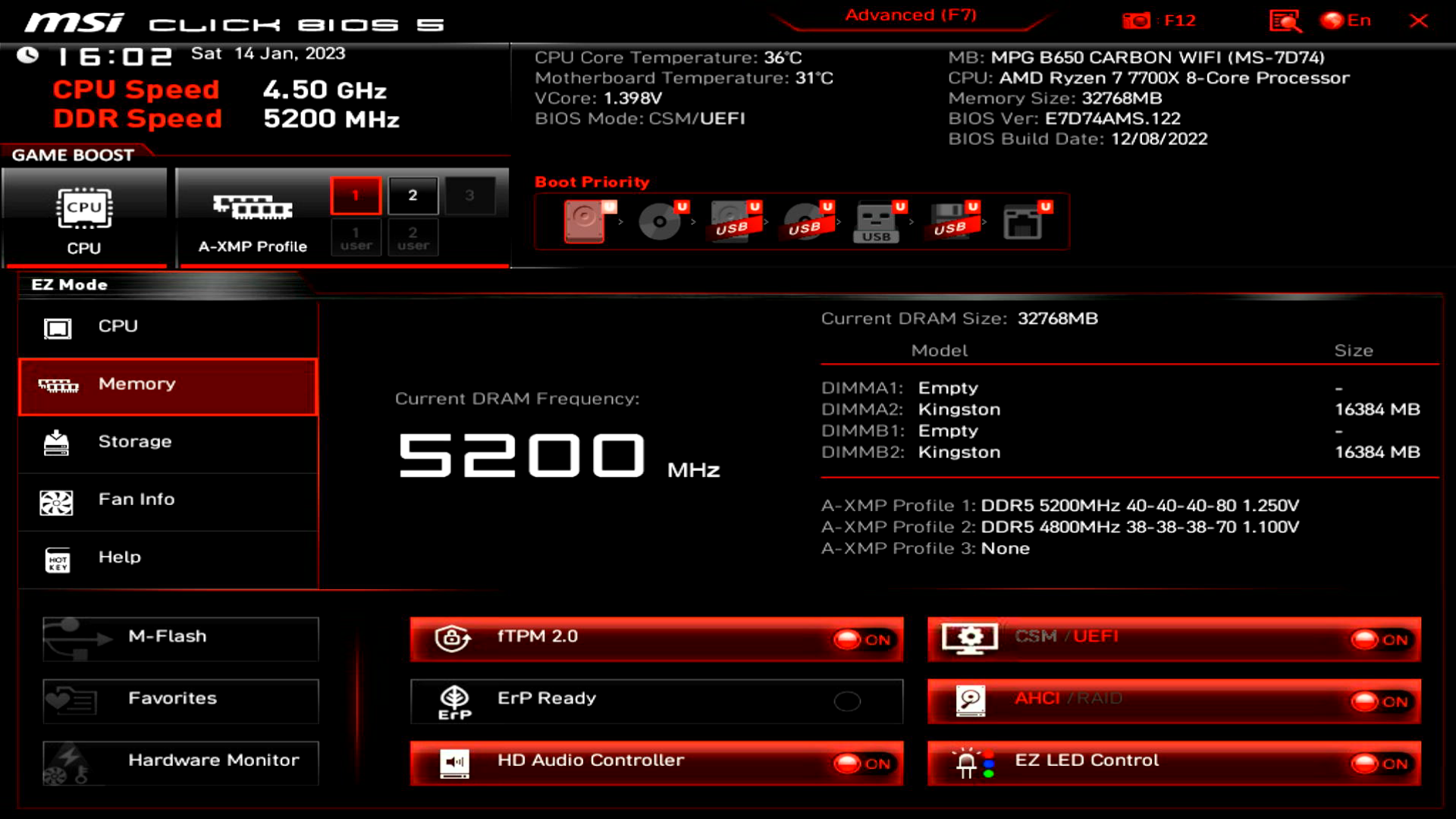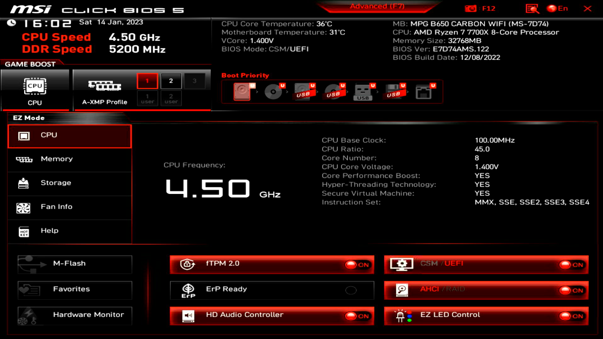| CPU | AMD Ryzen 7 7700x |