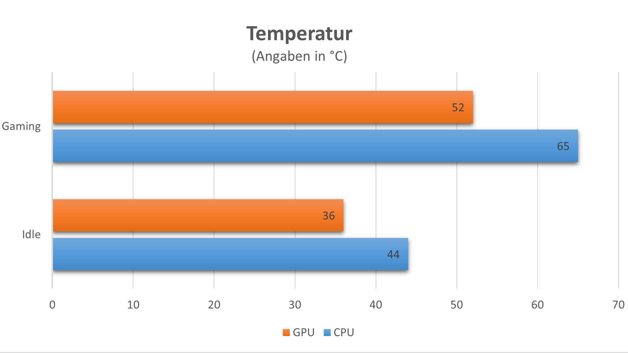 Wir nutzen in unserem Testsystem eine All-In-One Wasserkühlung, bei dieser wurden die Pumpe auf ca. 1600 U/min und die dazugehörigen Lüfter auf ca. 800 U/min eingestellt. Gleiches gilt für die vier Lüfter des MSI MPG GUNGNIR 300R AIRFLOW. Alle Drehzahlen sind fest eingestellt. Trotz der geringen Drehzahlen ist zu erkennen, dass im Idle sowie beim Gaming sich die Temperaturen immer im grünen Bereich bewegen. Zudem ist zu erwähnen, dass die Maximaldrehzahl der Gehäuselüfter bei gerade einmal 1100 U/min liegt.