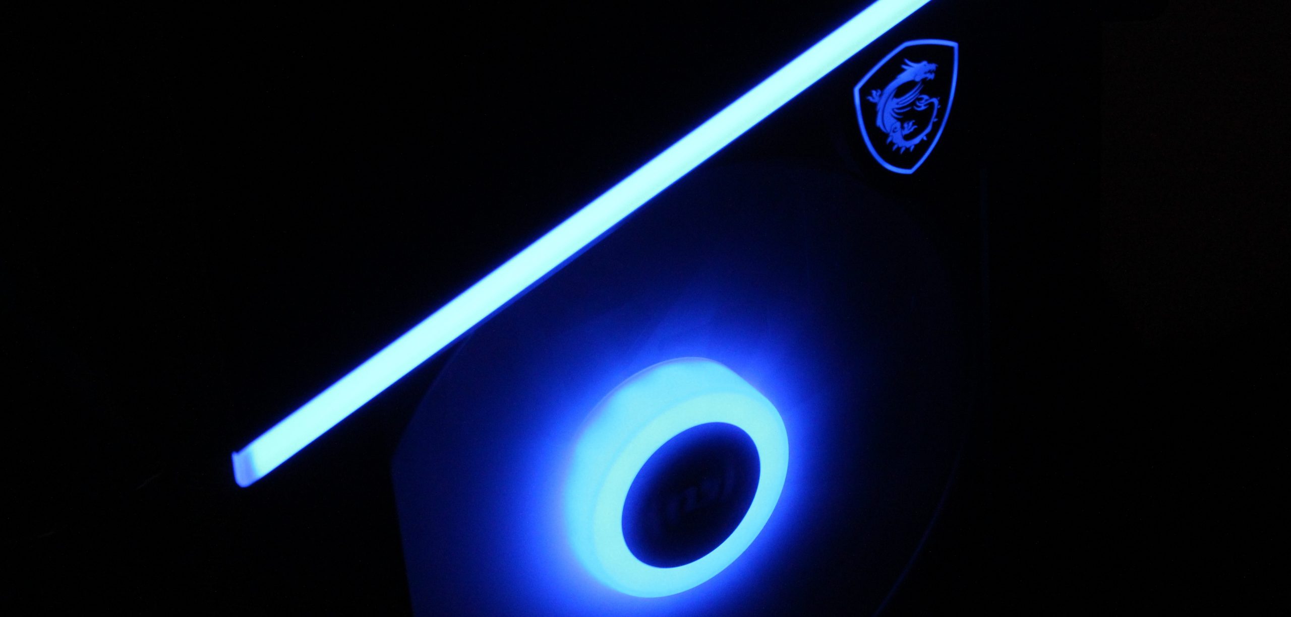 Nach dem Auspacken fällt uns beim MSI Sekira MPG 500X direkt auf, dass wir hier ein Premium-Gehäuse vor uns haben. Die Materialien fühlen sich hochwertig an, die Spaltmaße sind frei von Kritik und die Türen erleichtern uns den Ein – und Ausbau von Hardware. Das Top ist aus getöntem Glas und lässt den Blick auf die von Werk verbauten 200 mm aRGB-Lüfter frei. Auch an der Front ist im unteren Drittel eine Glasfläche, hinter der ebenfalls ein 200 mm Lüfter verbaut ist. Darüber befindet sich ein diagonaler Streifen, der – wer hätte es gedacht – ebenso wie das darunter liegende MSI Logo über eine LED Beleuchtung verfügt. Im Gesamten macht das Sekira MPG 500X den Eindruck, als wollte MSI beweisen, dass schlichte Eleganz und RGB Beleuchtung nicht unbedingt eine gegensätzliche Bedeutung haben.