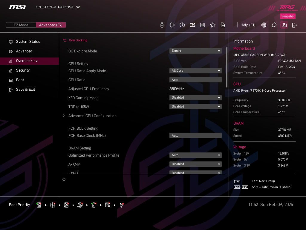 | Mainboard | MSI MPG X870E CARBON WIFI |