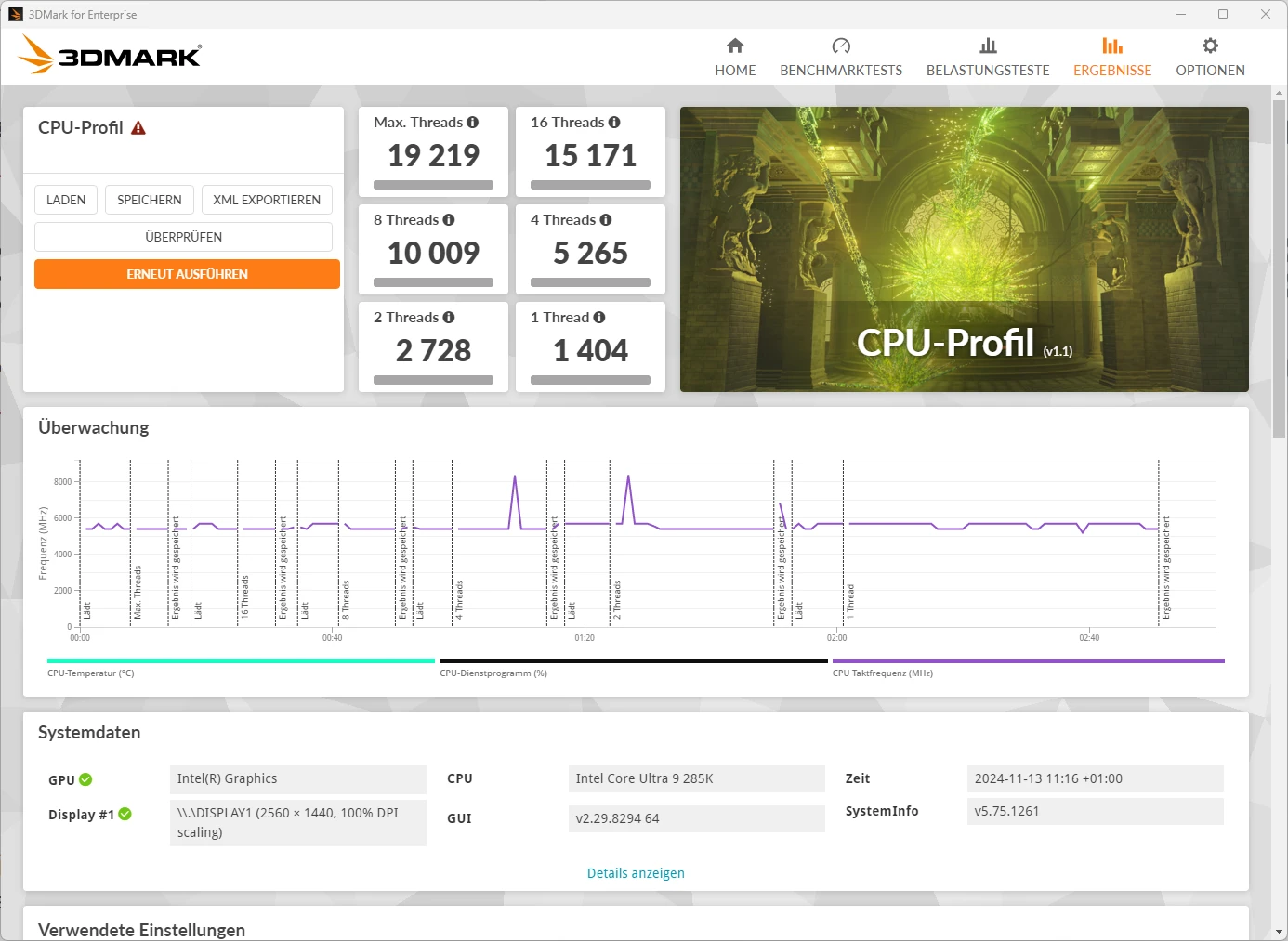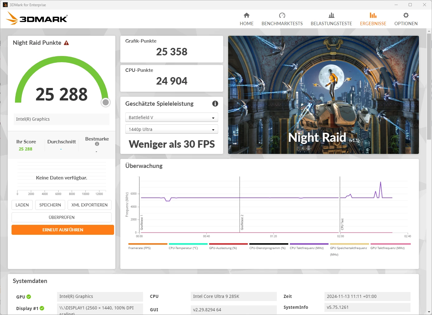 Mit der Software 3DMark von UL Solutions können verschiedene Aspekte des Systems getestet werden. Mit dem Benchmarktest Night Raid haben wir die Spieleleistung des Systems untersucht und mit dem CPU Profile noch einmal explizit die Leistung des Hauptprozessors.