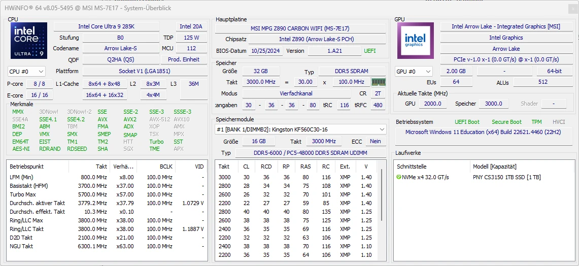 | Hersteller und Bezeichnung | MSI MPG Z890 CARBON WIFI |