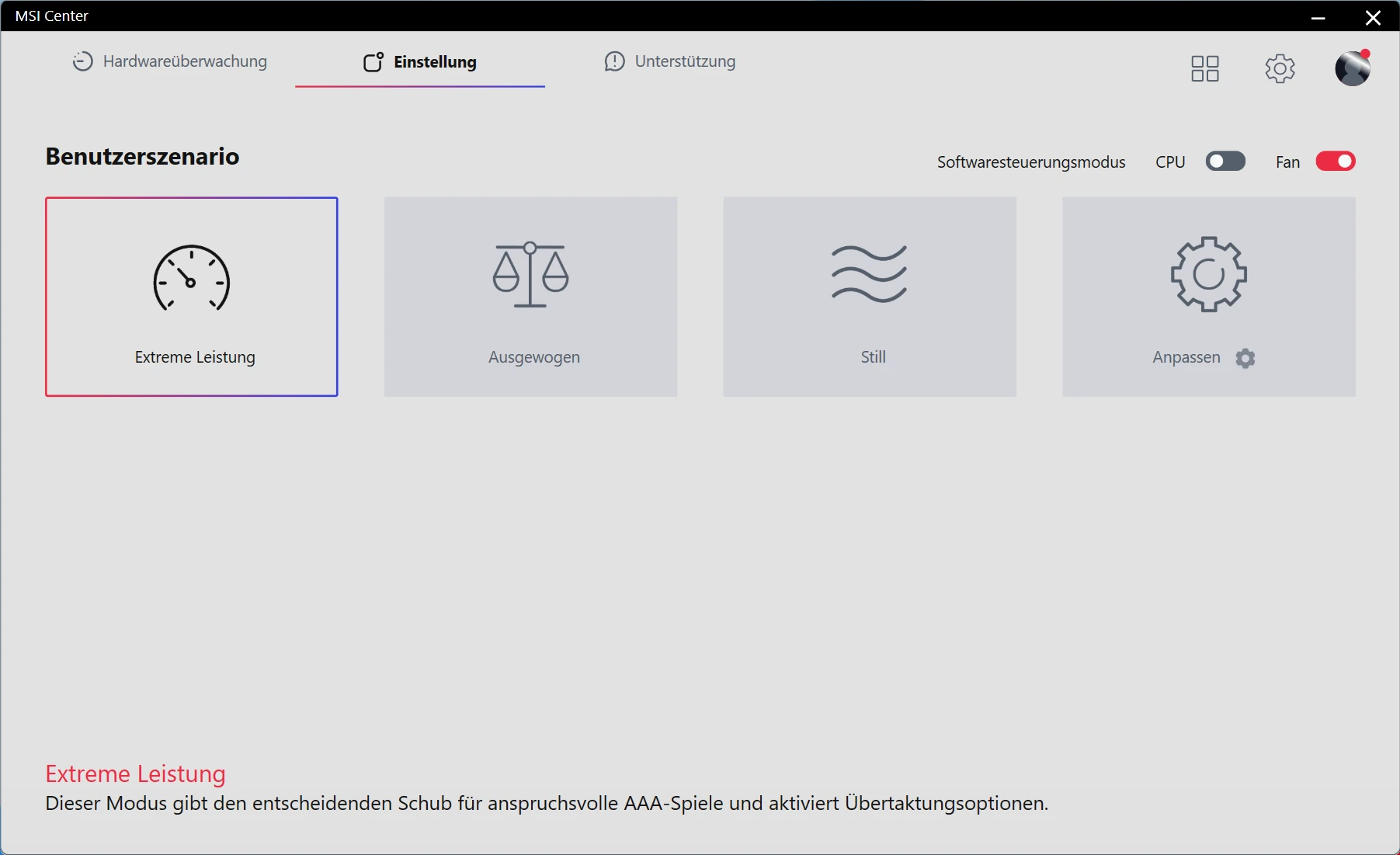 Als primäre Begleitsoftware kann das bekannte MSI-Center eingesetzt werden. Die Software ist modular aufgebaut und kann nach den Wünschen des Anwenders angepasst werden. In der Grundausstattung ist die Installation bzw. das Update von Treibern oder des BIOS darüber sehr einfach möglich. Die optionalen Funktionen umfassen z.B. RGB-Beleuchtungssteuerung, Lüftersteuerung oder Übertaktung der CPU. Die Benutzeroberfläche ist sehr einfach gestaltet und ermöglicht eine intuitive Bedienung. Etwas störend am MSI Center ist die lange Ladezeit des Programms, auch sind nicht alle Texte und Schaltflächen ins Deutsche übersetzt. Vor allem, da die Software nun schon einige Jahre verfügbar ist, finden wir es schade, dass viele Texte und Meldungen noch nicht ins Deutsche übersetzt wurden. Bei beiden Programmen muss man bei der Installation der Treiber etwas aufpassen, sonst werden einige unnötige Programme direkt mitinstalliert.