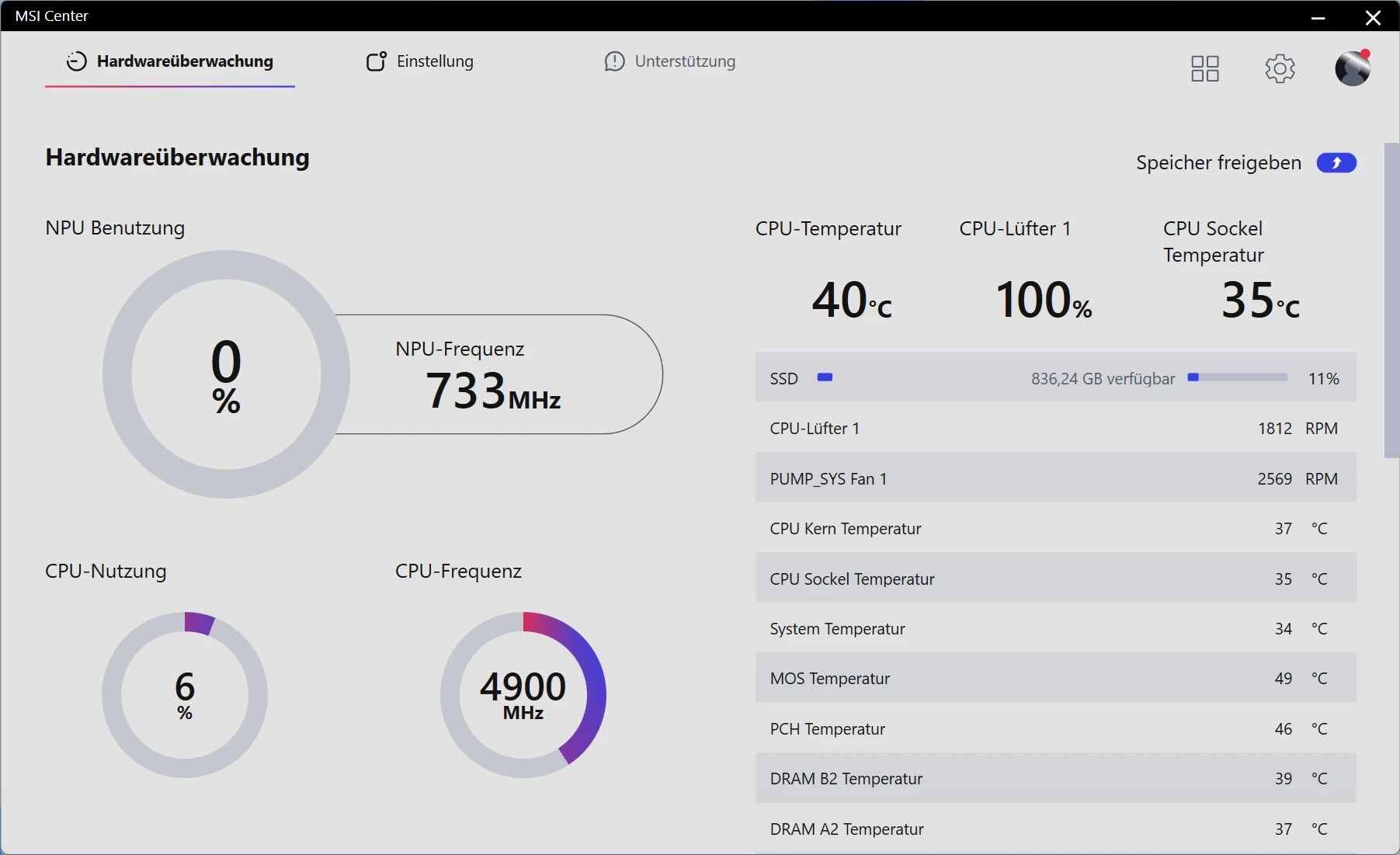 Softwareseitig hat sich nicht viel getan, das MSI Center mit seinen Stärken und Schwächen kommt weiterhin zum Einsatz. Im BIOS hat der Hersteller der neuen Mainboardgeneration jedoch ein schickes Makeover verpasst, das einen modernen und intuitiven Look bietet.