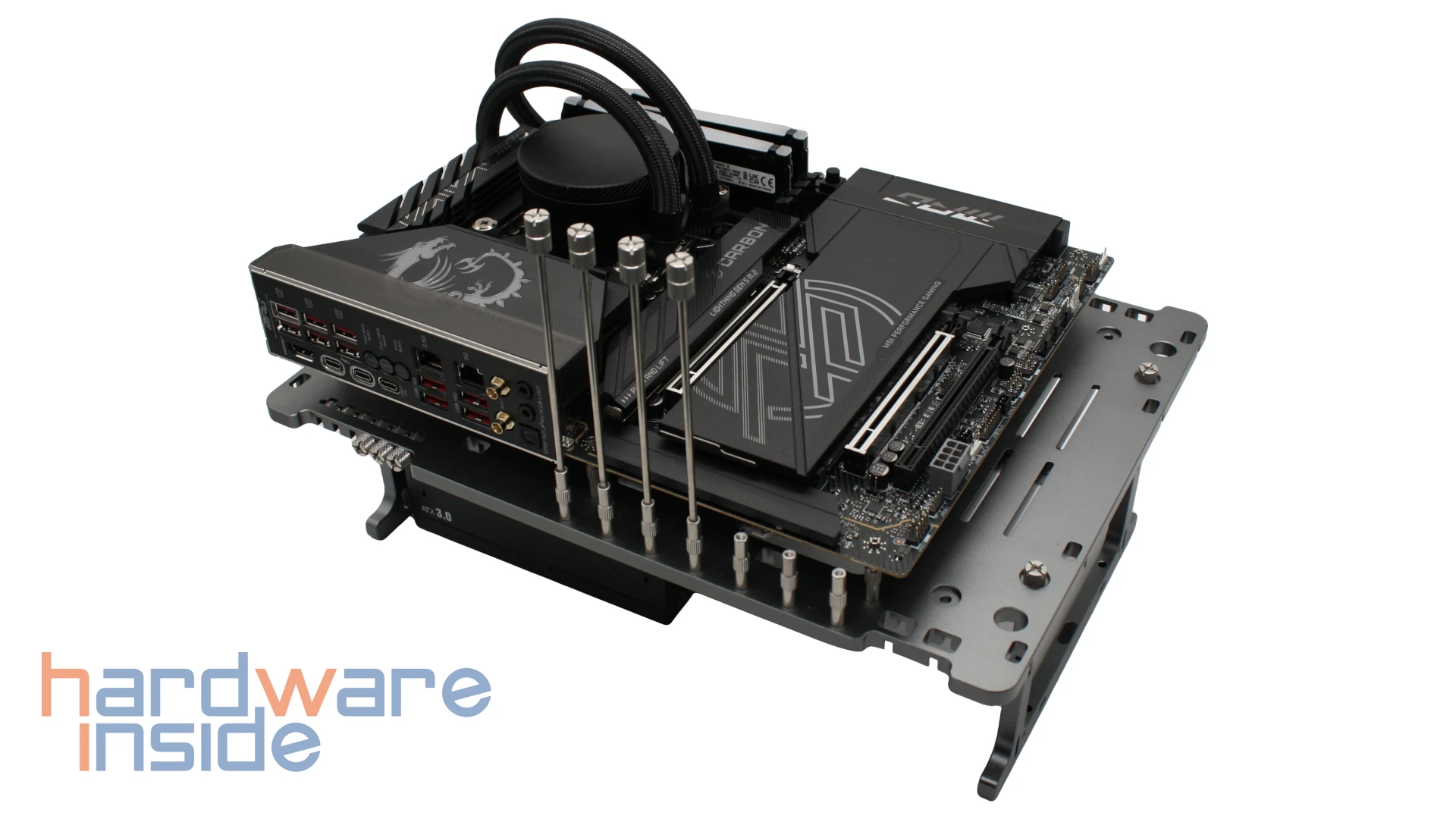 Für unseren Test des MSI Z890 Carbon Wifi setzen wir auf einen Intel Core Ultra 9 Prozessor 285K, das Flaggschiff der aktuellen CPU-Generation von Intel. Das System bauen wir auf dem Open Benchtable auf, als Netzteil kommt ein Inter-Tech Sama 1200A zum Einsatz. Als Arbeitsspeicher unterstützt ein Kingston DDR5-6000 32 GB Kit die CPU und für die Kühlung ist ein Inter-Tech Argus Iceman B-120 AiO zuständig.