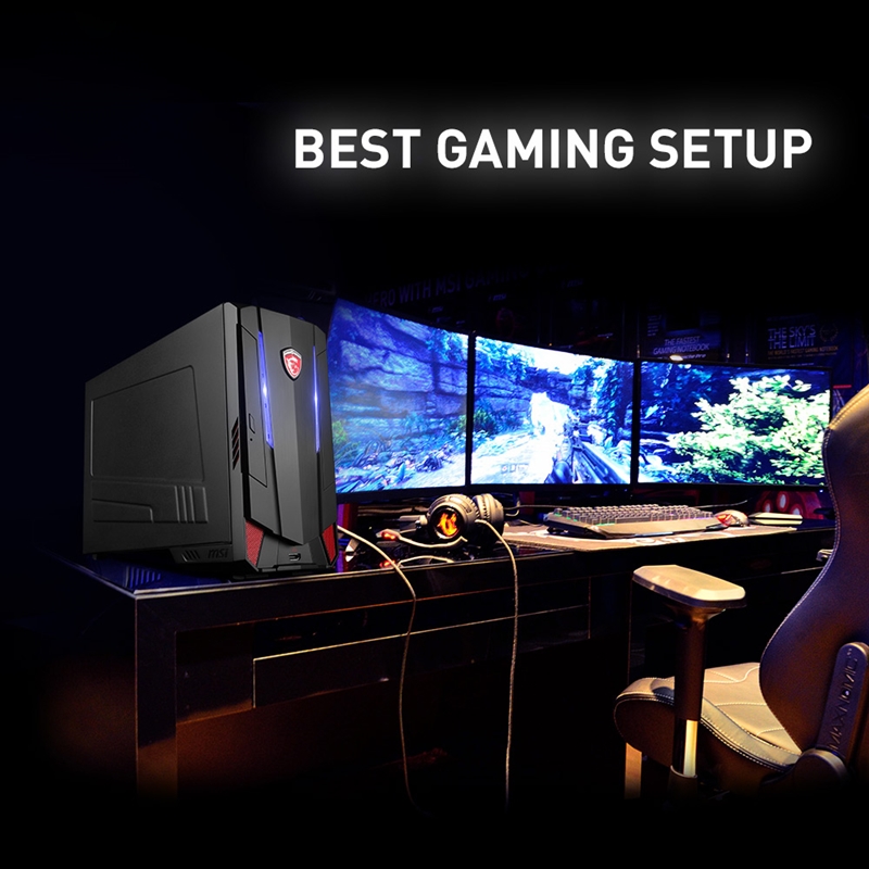 Der Intel Optane 16 GB Speicher sorgt als flinker Cache mit 3D-XPoint-Technik für höchste Datenraten auf dem Niveau schneller PCIe-NVMe-SSDs. Die hohe Geschwindigkeit kombiniert MSI beim Nightblade MI3 mit dem großen Speicherplatz einer 2-TB-Datenfestplatte in klassischer 2,5“‑Spindelbauweise – eine bisher unerreichte Kombination. Der Nightblade MI3 erhält damit einen weiteren exklusiven Pluspunkt, der ihn gegenüber anderen Gaming-PCs abhebt. Auch die sonstige Ausstattung überzeugt: Hohe 3D-Frameraten beim Gaming liefert die GeForce GTX 1050 Ti GAMING 4G Gaming-Grafikkarte aus der MSI eigenen Schmiede mit leisem und starkem Twin-Frozr-VI-Kühler. Die hochkante Befestigung der Grafikkarte im Gehäuse sichert Stabilität beim Transport, der durch den im vorderen Fuß integrierten Tragegriff erleichtert wird. Das MSI-Motherboard mit hochwertigen Bauteilen nach Military Class 5-Standard sucht ebenso seinesgleichen in solch einer kompakten Umgebung. Die »Silent Storm«-Kühlung mit getrennten Kühlbereichen und Luftwegen ermöglicht einen leisen Betrieb bei gleichzeitig niedrigen Systemtemperaturen. Audio Boost 3- und Nahimic 2 Audio Enhancer-Technik liefert kristallklaren und dynamischen Klang. Ein praktisches Merkmal beim Ausflug in virtuelle Welten ist der »VR-Link« an der Front: Das Signal der Grafikkarte wird über diesen Port zur Vorderseite durchgeschleift, um den Anschluss der VR-Brille besonders einfach und bequem zu machen. Die programmierbare »Mystic Light« RGB-Beleuchtung des Gehäuses setzt individuelle Akzente und lässt dem Nutzer die Auswahl aus 16,8 Millionen Farben und zahlreichen Lichteffekten.