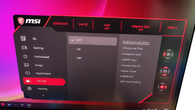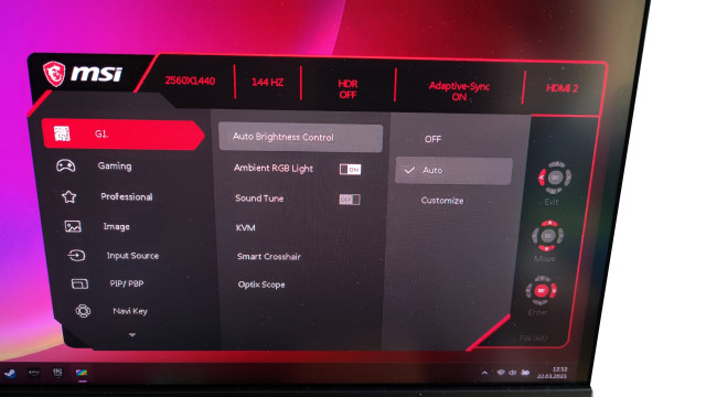 MSI gibt in der Dokumentation zum Monitor einen typischen Verbrauch von < 160 Watt an. Daher die Annahme, dass der Monitor bis zu 160 Watt verbrauchen „kann“. Wir haben jedoch nur einen Verbrauch von 59,9 Watt bei eingeschalteter RGB-Beleuchtung und automatischer Helligkeit messen können. Das könnte noch erhöht werden, wenn entsprechende USB-Geräte genutzt werden, aber über 100 Watt sollte der Verbrauch dann auch dabei nicht gehen. Die Werte für den Standby-Modus entsprechen den EU-Richtlinien, einen Schalter zum vollständigen ausschalten gibt es leider nicht.