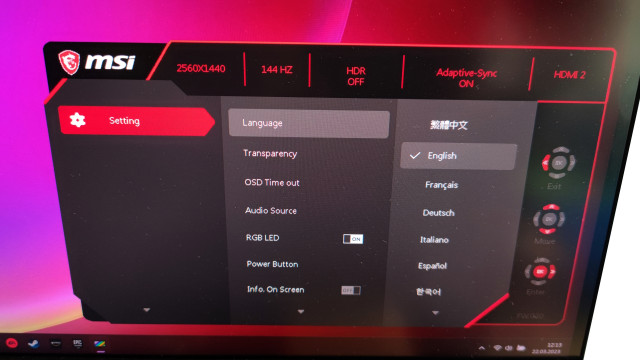 Wie es mittlerweile bei einigen Gaming-Monitoren üblich ist, verfügt auch der MSI Optix MPG321QRFDE-QD über eine RGB-Beleuchtung auf der Rückseite. Dabei können viele verschiedene Lichteffekte und Farben ausgewählt werden, welche dann in fünf Segmenten auf der Rückseite des Monitors wiedergegeben werden.