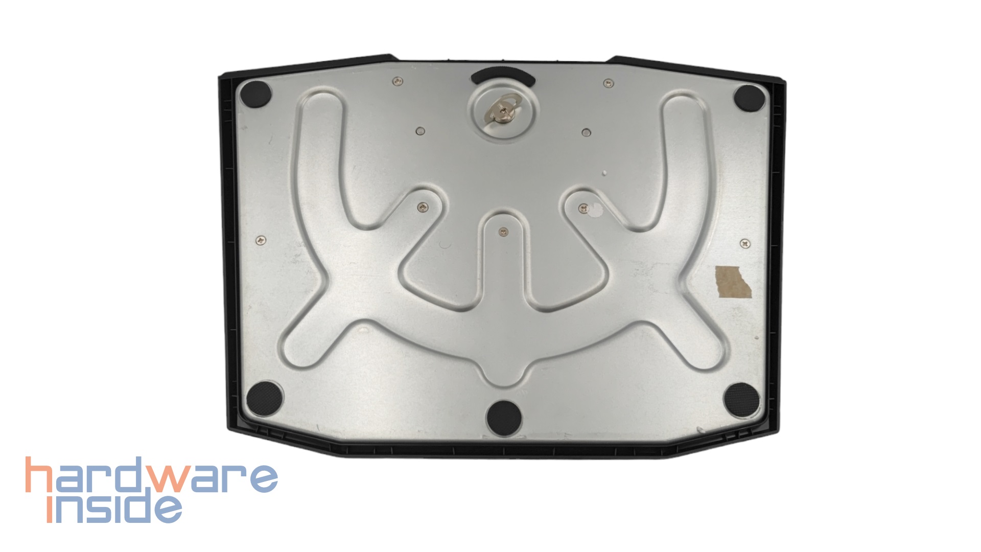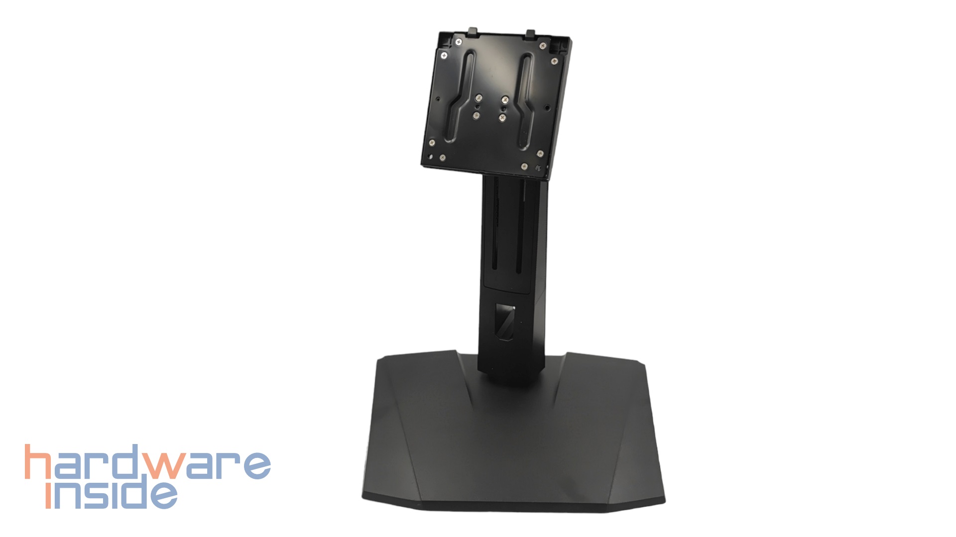 Wir werfen einen genaueren Blick auf den Standfuß des MSI Optix MPG321UR-QD. Auch dieser besteht aus zwei Teilen, dem Fuß und dem Arm. Beide werden über eine zentrale Schraube im Fuß miteinander verbunden, welche sich ohne Werkzeug festziehen lässt. Anschließend wird der Monitor eingehängt und mittels zweier Schrauben fixiert.