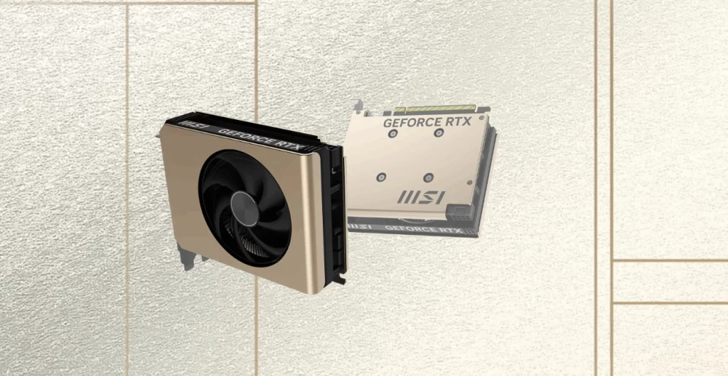 Die Kühlung übernimmt MSIs STORMFORCE-Lüfterdesign, das sieben krallenförmige Lüfterblätter in kreisförmiger Anordnung nutzt, um die Luft effektiv durch den Kühlkörper zu leiten. Der Kühlkörper selbst kombiniert eine Kupferbodenplatte für optimale Wärmeübertragung mit einem sonnenförmigen Aluminium-Lamellenlayout, das die Wärme effizient verteilt. Ergänzt wird das Ganze durch eine stabile Backplate mit Lüftungsschlitzen, durch die warme Luft direkt abgeführt wird – so bleibt auch in engen Gehäusen mit eingeschränktem Airflow die Temperatur im grünen Bereich und die Lautstärke angenehm niedrig, selbst unter Last im Gaming- oder Workstation-Betrieb.