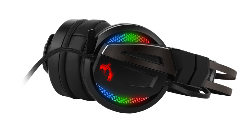 Über den im Kabel integrierten Lautstärkeregler können der Surround Sound und das Mikrofon bei Bedarf abgeschaltet werden. Das MSI Gaming-Center ermöglicht darüber hinaus ein Feintuning der Einstellungen. Optimaler Tragekomfort wird durch die großen weichen Ohrmuscheln und das flexible, ergonomische Kopfband sichergestellt, das die Last gleichmäßig über den gesamten Kopf verteilt. So lässt sich das Headset ohne Einschränkungen auch stundenlang tragen. Im Lieferumfang sind zwei verschiedene Ohrmuschel-Aufsätze mit weicher Polsterung enthalten – einmal aus Stoff und einmal in schicker Lederoptik.