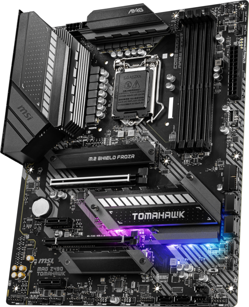 Die MSI Z490 MAG-Serie ist leistungsorientiert und konzentriert sich auf die für Gamer wirklich wesentlichen Spezifikationen. Das MAG Z490 TOMAHAWK verfügt über eine Aluminiumabdeckung und das MAG B460 TOMAHAWK über ein erweitertes Kühlkörper-Design. Massive Kühlkörper sorgen für bessere thermische Effizienz. Alle M.2-Steckplätze sind mit M.2 Shield Frozr ausgestattet, um eine Drosselung aufgrund von Überhitzung zu verhindern. Die Stromversorgung mit digitaler PWM und 12+1+1 Duet Rail Power System garantiert Stabilität und Konsistenz bei der Leistungsabgabe.