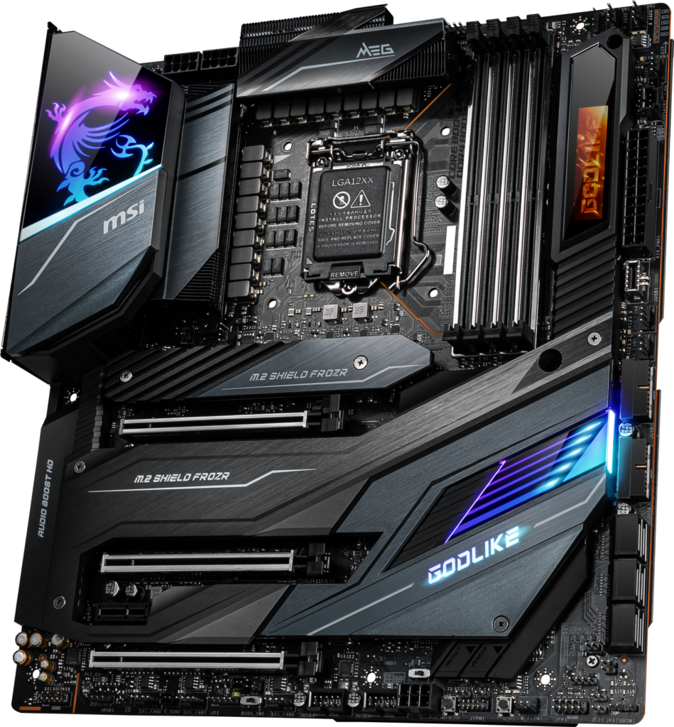 Die Hauptplatinen der Highend-MEG-Serie verfügen über ein aktives Kühlsystem, dem Frozr-Kühlkörper-Design mit doppelt kugelgelagertem Lüftern, Zero-Frozr-Technologie und Lüftungsöffnung am I/O-Shield. Das MEG Z490 GODLIKE bietet ein noch leistungsfähigeres thermisches Design, einschließlich Stacked Fin Array, Heatpipe und MOSFET-Baseplate, welches für extreme Leistung und Übertaktung ausgelegt ist.