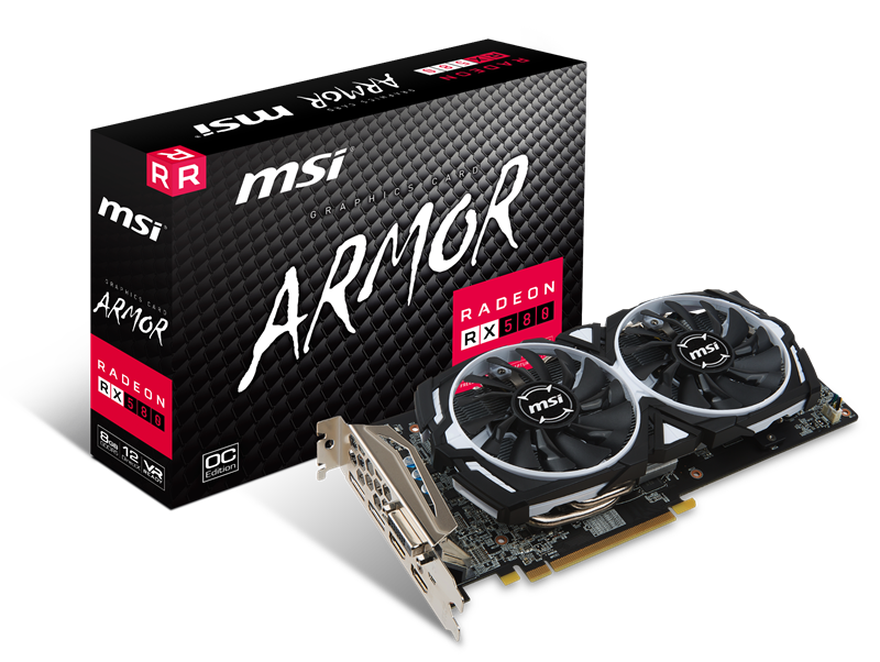 Im Bereich der ARMOR-Serie präsentiert MSI die Radeon™ RX 580 ARMOR 8G OC bzw. 4G OC mit einem Core-Clock von 1366 MHz und 7000 MHz Speichertakt sowie das 570er-Modell Radeon™ RX 570 ARMOR 4G OC. Die ARMOR-Serie beruht auf einem puristischen Schwarz-Weiß-Design und ist mit einem 100mm-Doppellüfter, Torx-Fans und langlebigen Solid-Caps ausgestattet. Die ARMOR-Modelle unterstützen außerdem MSIs Zero-Frozr-Funktion für einen leisen Niedriglastbetrieb ohne Lüftergeräusche.