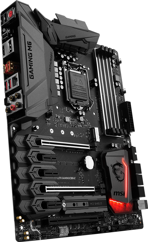 Frankfurt am Main / Taipeh, 09.03.2017 – MSI erweitert sein Line-up an High-End-Gaming-Mainboards um das in mattschwarz gehaltene Z270 Gaming M6 AC. Der neue Gaming-Bolide im ATX-Formfaktor verfügt über einen LGA 1151-Sockel und unterstützt Intel-Prozessoren der siebten Generation (Kaby Lake). Mit an Bord sind vier Dual Channel-Slots für DDR4-RAM mit Taktraten bis zu 3866 MHZ (OC) sowie eine umfangreiche Auswahl an MSI-typischen Gaming-Features. Darunter die fortschrittliche Audio Boost 4 Technologie mit Nahimic 2, Killer E2500 Gigabit LAN, Turbo U.2, Twin Turbo M.2 (Optane Ready) mit NVMe-Support, M.2 Shield sowie DDR4 Boost mit Steel Armor. Für Multi-GPU-Setups werden NVIDIA SLI (2-fach) und AMD Crossfire (3-fach) unterstützt. Durch die zusätzliche WLAN-Karte mit Dual Band Wireless-AC 8265 und Bluetooth 4.2 kann der LAN-Port ausschließlich für Online-Gaming genutzt werden, während andere Online-Applikationen über Wi-Fi laufen. Dank MU-MIMO-Technologie werden AC-Datenübertragungsraten von bis zu 867 Mbps erzielt.