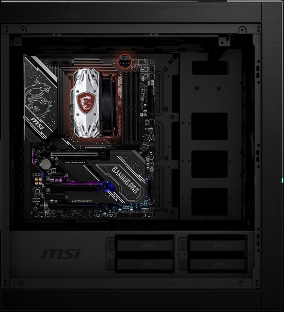 | Interne-IO | 1 x Power Connector ATX 2 x Power Connector CPU 1 x CPU Fan 1 x Pump Fan 5 x System Fan 2 x Front Panel JFP 1 x Gehäuse Überwachung JCI 1 x Front Audio JAUD 1 x TBT 1 x Tuning Controller JDASH 2 x Adressierbare RGB LED JARGB_V2 1 x JRGB 1 x TPM 4 x USB 2.0 4 x USB 3.2 Gen1 Typ A 1 x USB 3.2 Gen2 Typ C |