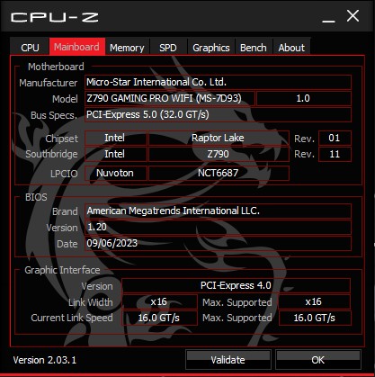 | Mainboard | MSI Z790 GAMING PRO WIFI |